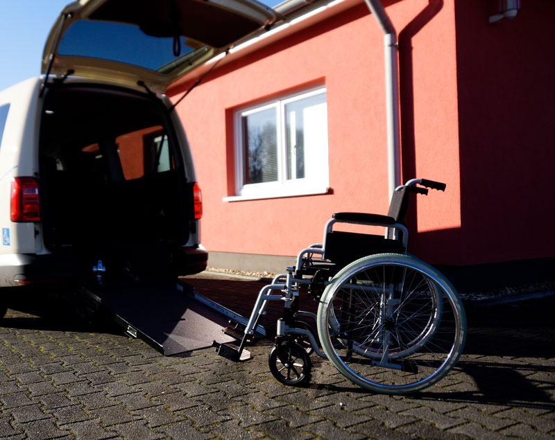 Mit unserem Rollstuhltaxi mit entsprechender Rampe fahren wir Sie sicher zu Ihrem Bestimmungsort.